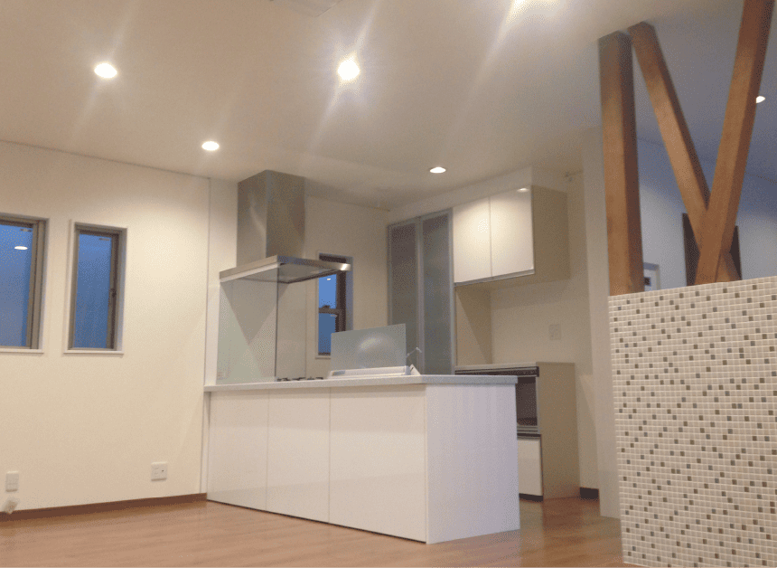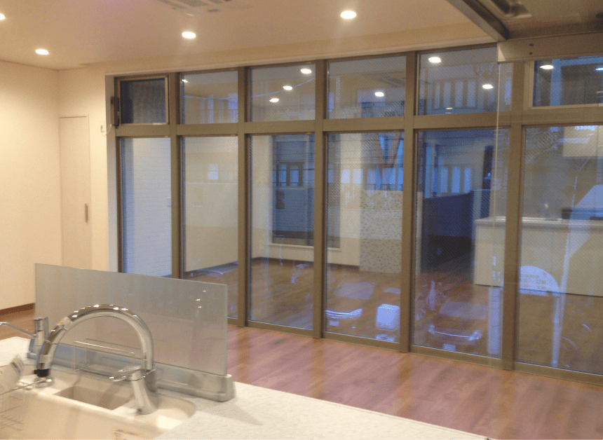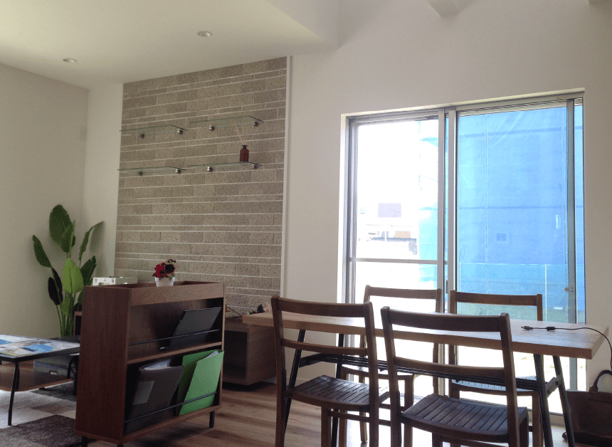 リビングの南面を熱線反射タイプの全面ガラス張りとし、明るい開放的な空間としました。